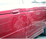左リアクオーターの大きな凹み修理です。ジャガーX308のボンネットです。飛び石?というより、雹害に近いような・・・ボンネット、ルーフ、トランクに無数に小さい傷があります。ほとんどオールペイントに近かったのですが、板金塗装修理で綺麗にご修理させていただきました。