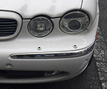 駐車場での突起物に気付かず、フロント右側のアンダー部を破損してしまいました。フロントバンパー割れ・ウインカーレンズ割れ・アンダーカバー破損です。ジャガーのフロントバンパーの中にはリーンホースメントが入っており、それも交換が必要となりました。バンパー交換の際には、メッキモールの再利用ができませんので、メッキモールも交換しました。お客様ご加入の保険にて修理いたしました。